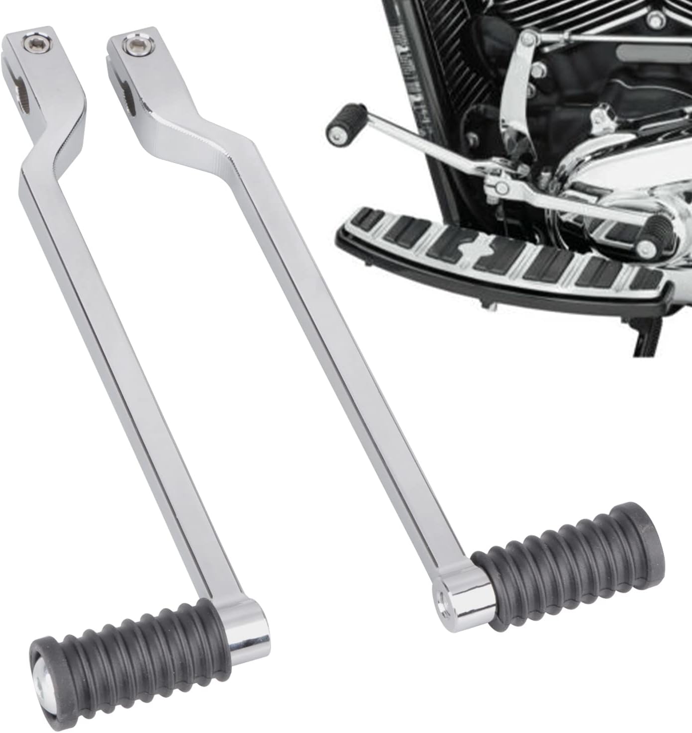Features:Condition:100% brand newMaterial:High quality AluminumAdd a unique style to your ride.This shift lever is Extended version.Make it easier and faster for you to change gears.Will be more comfortable and convenient.Shifter lever measures 9.84" long for an extended reach.Overall Length: 9.84”(250mm), Center-To-Center: 8.07”(205mm).Fitment:Fits 1986-later FL Softail, 1988-later Touring and 2008-later Trike models.Package include:1 x Front Shift Lever (Toe)1 x Rear Shift Lever (Heel)2 x Shifter Peg